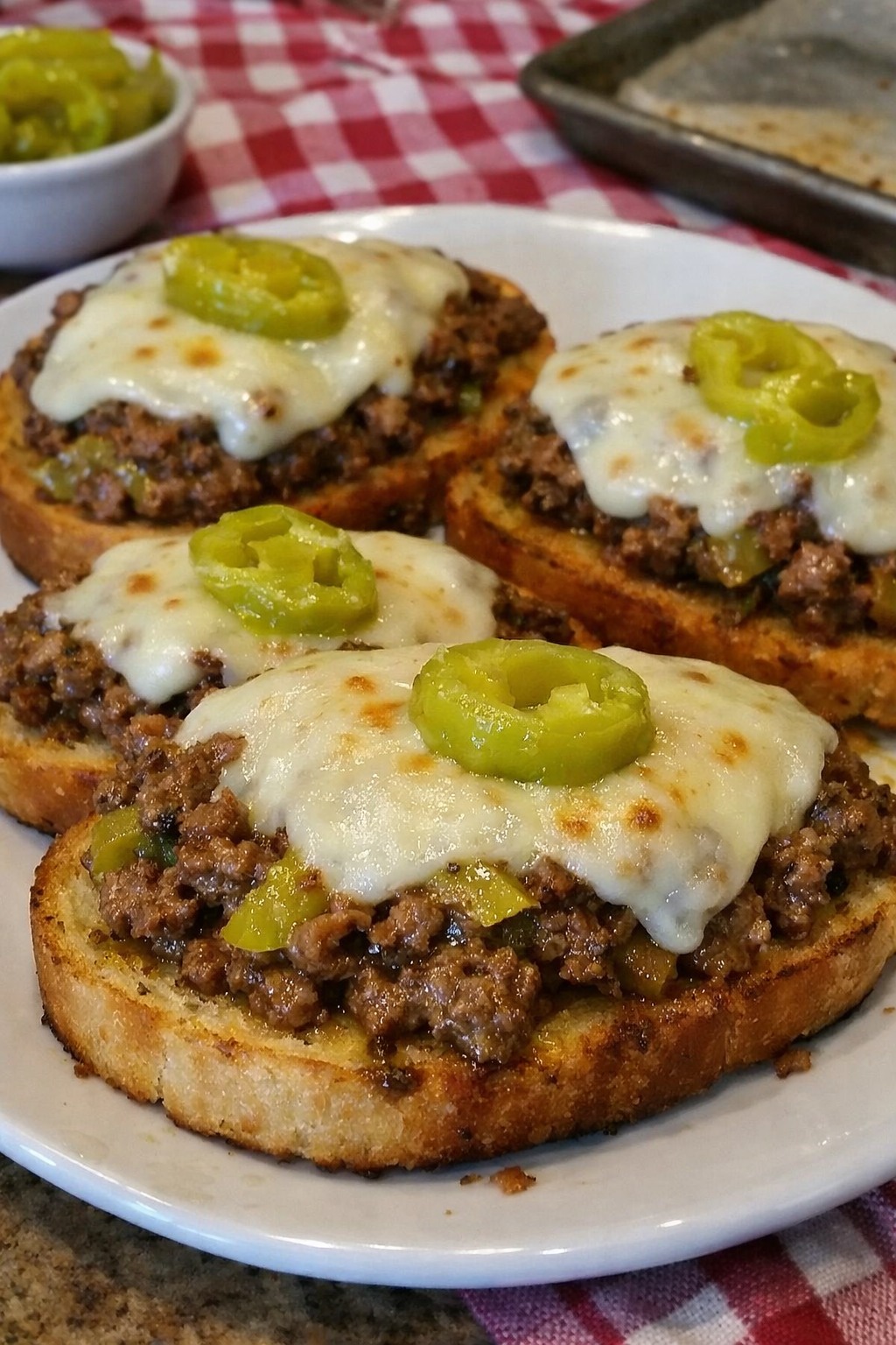 Place a slice of the toasted garlic bread on each plate. Spoon a generous amount of the Mississippi Sloppy Joe filling over the top. Garnish with extra pepperoncini slices or a sprinkle of cheese if desired. Serve immediately with your favorite sides.